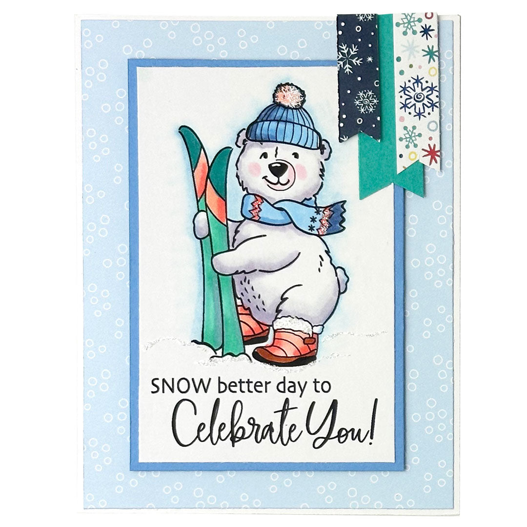 Perfect for winter birthdays, friendship cards, New Year celebrations, or just sending a little cozy cheer, this stamp set brings a lighthearted, grown-up winter feel without leaning into Christmas. Whether you’re crafting for ski lovers or anyone who enjoys winter coziness, these images and sentiments are sure to make hearts feel warm and smiles come easy.
