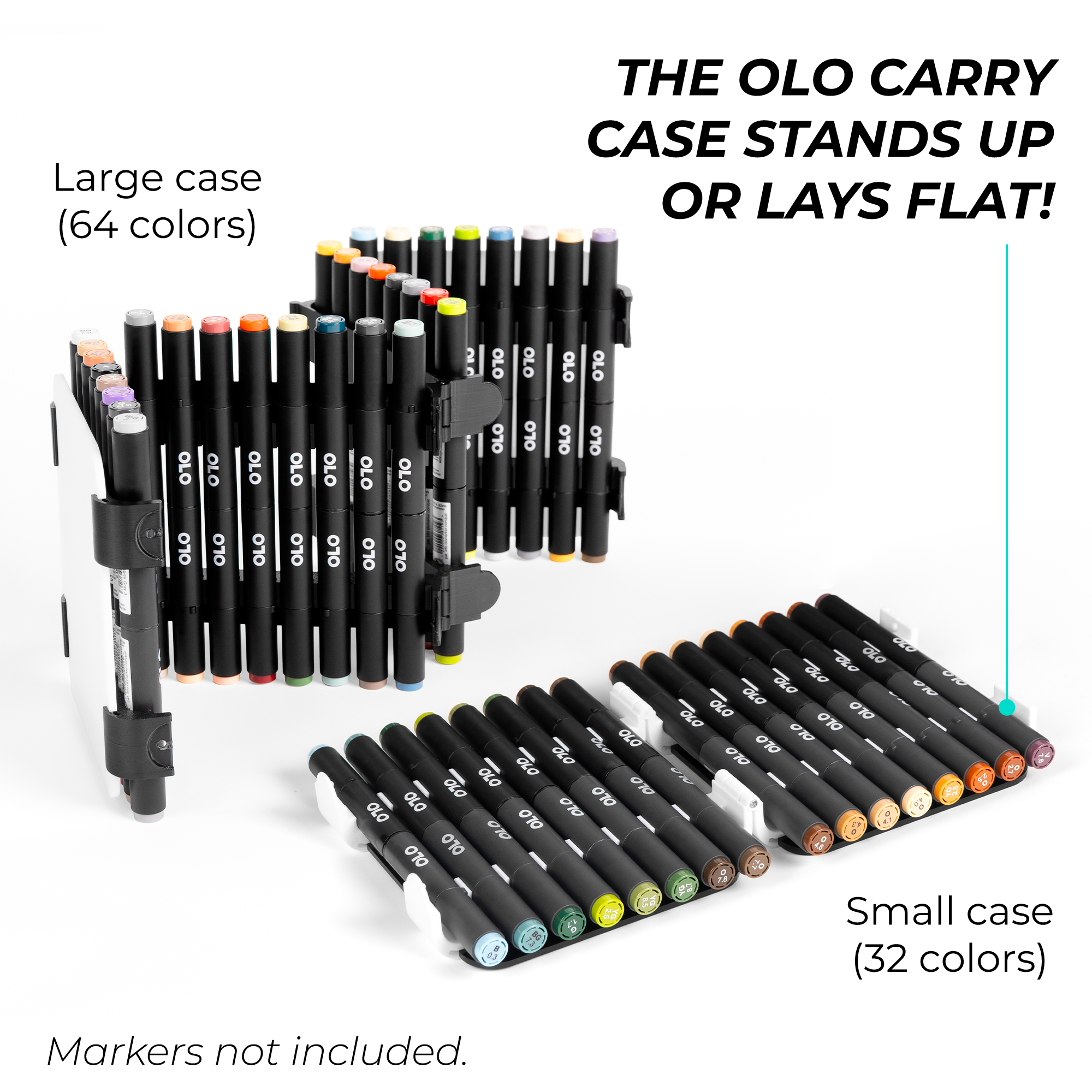 Keep your OLO Alcohol Markers organized, protected, and easy to access with the customizable OLO Marker Carry Case System. Choose your clip size (small for up to 32 markers, large for up to 64) to build a case that fits your collection perfectly. The pieces are snapped together for a secure, tailored storage solution. Designed to stand upright or lay flat on your workspace, it makes sorting, identifying, and transporting your markers a breeze, with stylish panels branded with the OLO logo that show off your creative gear.