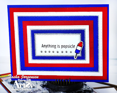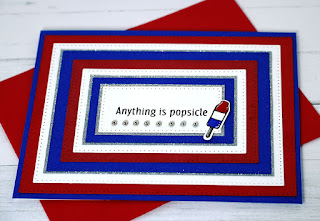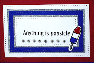 The sentiment and popsicle were both stamped with D2BA Totally Black Ink. I used the coordinating die set to cut the popsicle out and layered two popsicles to raise the image up without foam tape.
